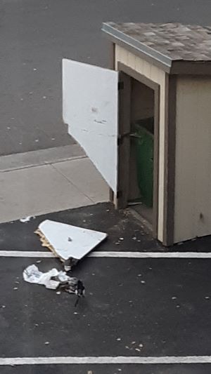 Bear Damage: 2020 10-18 Bad bear ripped door in pieces All Featherheads at work..... FIXED !! Next morning even more garbage out..... + + + + + + + + + + + + + + + + + + + + + + + + + + + + + + + + + + + + + + + +