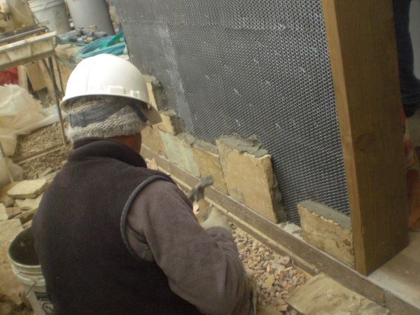 A new front wall is coming along.